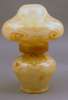 the mushroom shade above shouldered ovoid base with spreading foot, the whole with mottled lemon swirl inclusions, (cracks)