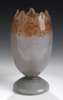 the ovoid body with spreading base and crowned rim, with pale mottled blue glass and mottled rust glass to the rim, etched mark