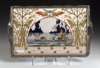 the undulating white metal gallery enclosing a glazed earthenware panel, printed and painted with an elaborate moonlit scene with lily, starfish and wave border, stamped mark, earthenware marked 2024/137 verso