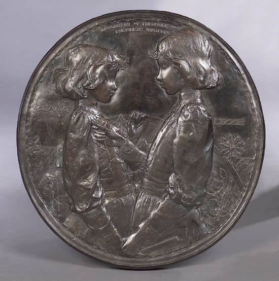 "Daughters of Frederick and Elizabeth Shattuck, Clara and Lizzie", a contemporary patinated bronze roundel, inscribed verso "Plowden P. Smith 1991 1/10