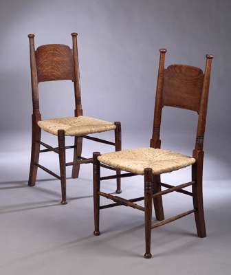High Wycombe, each with broad slightly arched back with ring turned uprights on rushed seats and turned tapering legs united by stretchers, with ring turning to the feet (4)
