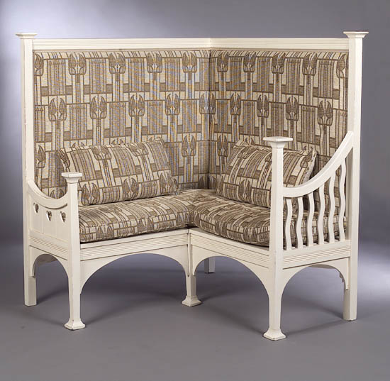 An Arts & Crafts white overpainted corner seat,