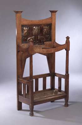 An Arts and Crafts oak stick stand by Wylie and Lochhead, Glasgow,