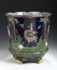probably George Jones, of slightly tapering cylindrical form moulded with panels of storks hunting for fish within faux bamboo frames on a naturalistic base, (restored)