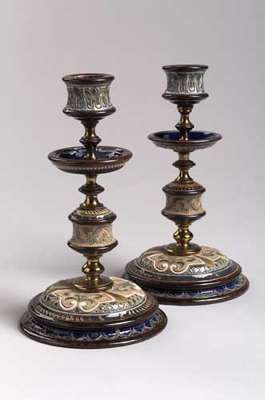 A pair of Doulton Lambeth candlesticks by Florence Barlow