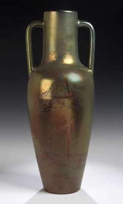 decorated in a seascape with umbrella pines, incised marks 'Vallauris D.M,A.M.'
