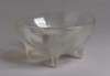 of circular form with three feet, moulded as flower heads, moulded mark, 'R. Lalique'