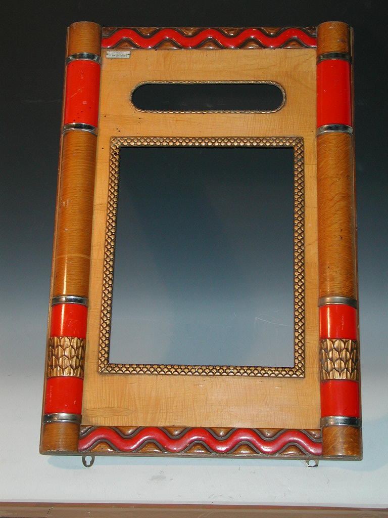 of rectangular outline, with Egyptianesque pilasters having chrome mounts and etching gilt slip and aperture for a poster, within wavered borders, bears label 'Property of Classic Displays Ltd'