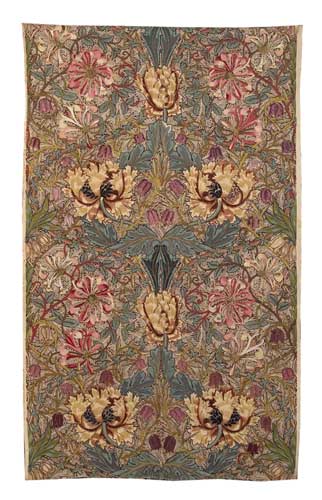 printed in the Honeysuckle pattern and woven in coloured wools, printed makers mark to the selvedge ,Morris & Co. 26 Queen Square Bloomsbury