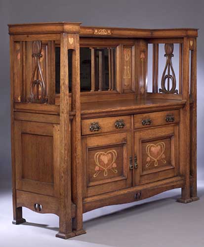 An oak and marquetry inlaid Art Nouveau sideboard