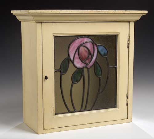 An overpainted and leaded glass table cabinet attributed to E.A. Taylor