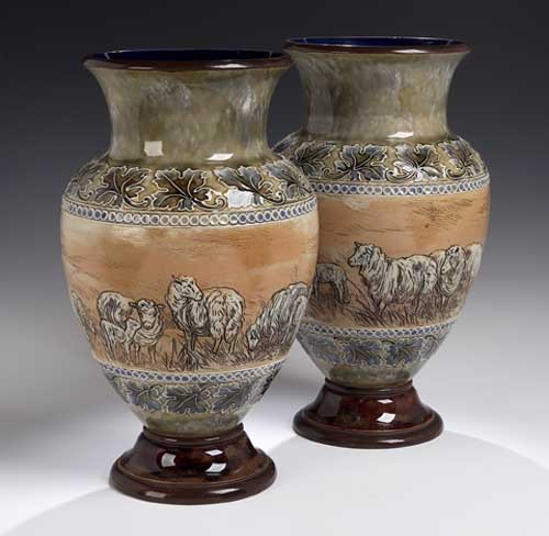 A pair of Doulton Lambeth vases by Hannah Barlow