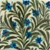 each square tile painted in green and turquoise on a white ground with flowering sprigs in the 'Boston' design, impressed Sands End marks verso, 15.5cm square, also four turquoise glazed spacer tiles (12)