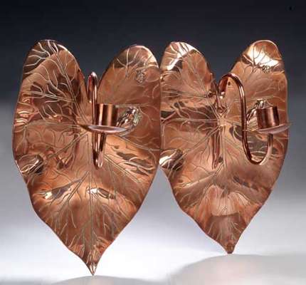 A pair of copper Aesthetic movement candle sconces
