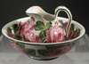 each painted with branches bearing cabbage roses, the ewer, 14cm high, and the basin, 29cm diameter, green painted marks 'Wemyss' (2)