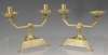 each with twin angular branches with broad drip trays and removable nozzles (one lacking) supported by brackets, the whole raised on triangular base with meandering foliate frieze on scroll feet (2)