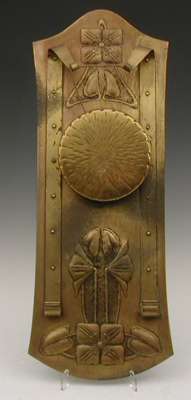 A Scottish Arts and Crafts brass wall mounted gong,