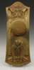 the shaped rectangular backplate, with riveted strapwork and repousse decorated with stylised plant forms, supporting a gong