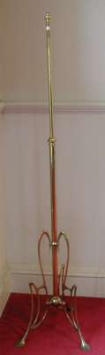 the turned adjustable column supported by three brackets cast as sinuous tendrils and terminating in pointed pad feet