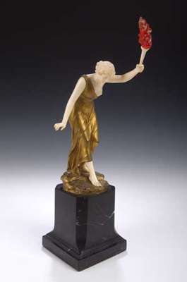 An Art Deco bronze and carved ivory figure, signed in the bronze 'F. Preiss'