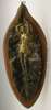 cast as a naked maiden lying on a leaf, the whole mounted on a shaped walnut plaque, signed in the bronze and inscribed 'Salon 1900'