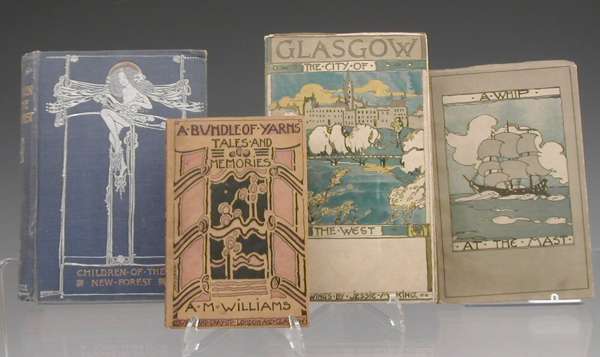 'Children of the New Forest', by Captain Marryat, pub. George Routeledge & Sons Ltd., London, 'A Whip at the Mast' , pub. James McKelvie & Sons Ltd., Greenock, 'Glasgow, City of the West', pub. T.N. Foulis, 'A Bundle of Yarns, Tales and Memories', by A.M. Williams, pub. Gowans and Gray Ltd., London and Glasgow (4)