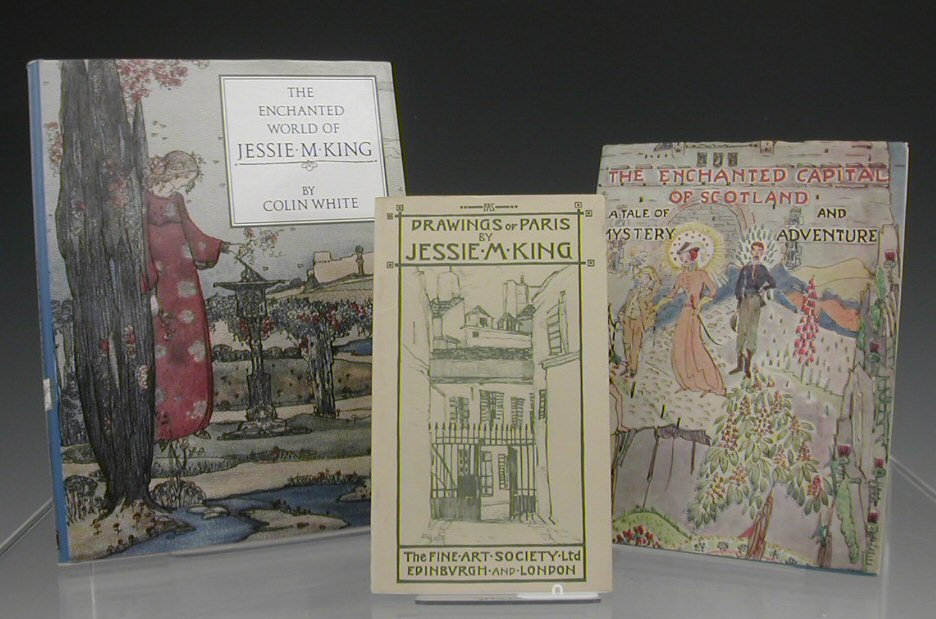 'the Enchanted Capital of Scotland', by Isobel K. Steele, pub. Plaid, Edinburgh and White, Colin 'The Enchanted World of Jessie M. King', pub. Canongate 1989, and 'Drawings of Paris by Jessie M. King', pub. The Fine Art Society Ltd., Edinburgh and London (3)