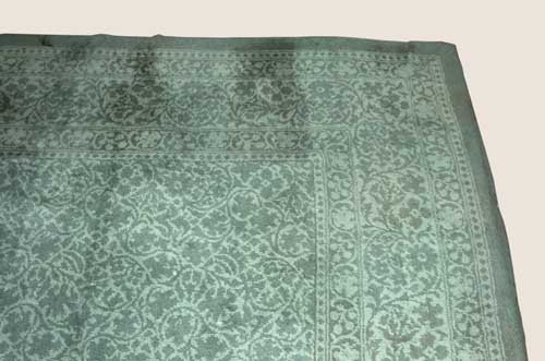 in the style of Morris & Co., machine woven, the field with allover scrolling flowering foliage in shades of green with a meandering foliate border with guard bands