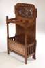 the panelled rectangular back inset with repousse decorated foliate panel above frame for sticks with further copper panel below and removable drip tray, the whole raised on square feet