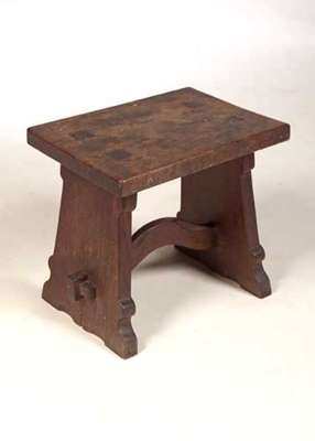 A Scott Morton oak stool, designed by Sir Robert Lorimer,