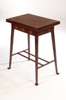 probably J.S. Henry, the rectangular hinged top inlaid with specimen woods, brass, copper and mother of pearl with stylised bands to the angles, and enclosing a baize lined interior, the whole raised on square legs linked by stretchers and terminating in pointed pad feet