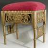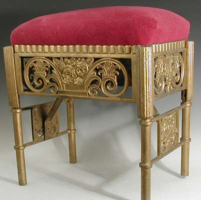 each with upholstered padded seats above pierced aprons cast with scrolling and flowering foliage, raised on turned supports linked by stretchers, bear makers label 'Edge-Lite, Chicago, Illinois' (4)
