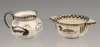 by William Miles Johnston, a jug, painted with swimming ducks, painted marks, 6cm high and a quaich painted with wading birds, unmarked, 12cm across (2)