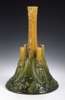 of flaring cylindrical form with tall neck, surrounded by four smaller necks, each moulded with owls, the body further moulded with stars and clouds, glazed in yellow and green, applied and impressed marks, 'Ault England 365'