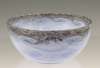 of circular form with mottled blue body and swirling amethyst rim