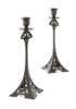 each with tapering stems with pierced whiplash foliate panels, stamped marks (2)
