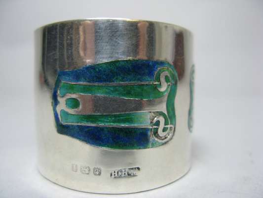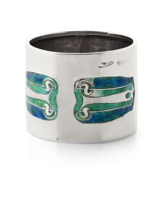 ARTS & CRAFTS SILVER AND ENAMEL NAPKIN RING, 1908