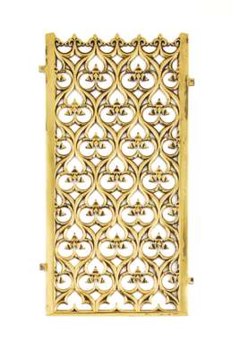 Note: These grilles were designed by Pugin to protect the glass on the doors of the new Palace of Westminster, for which he designed the interiors from 1844.