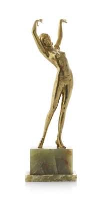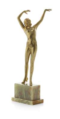 cast as a naked girl, with arms upstretched, raised on an onyx base