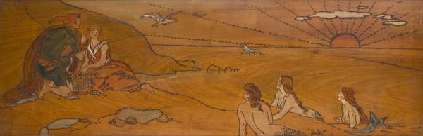 PAIR OF POKERWORK STAINED WOOD PANELS, CIRCA 1920