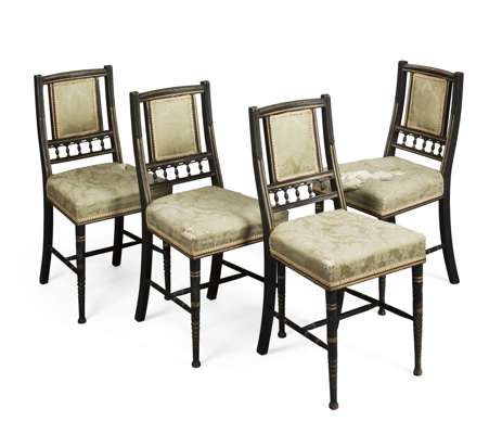SET OF FOUR EBONISED AND GILDED SIDE CHAIRS, CIRCA 1870