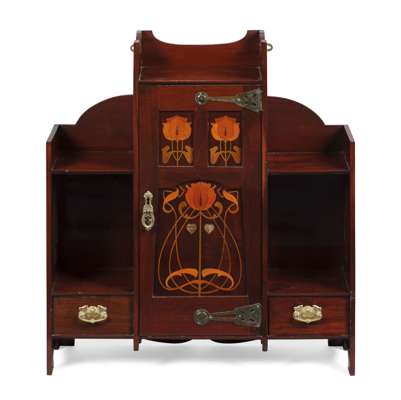 MAHOGANY AND MARQUETRY INLAID WALL CABINET, CIRCA 1900