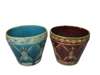 of tapering cylindrical form with foliate decoration, one on a turquoise and the other on a ruby red ground, printed marks MINTONS LTD/ RD. NO. 616446 (2)