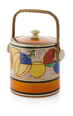 'MELON' ('PICASSO FRUIT') PATTERN BISCUIT BARREL & COVER, CIRCA 1930