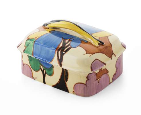 'BLUE AUTUMN' ('BALLOON TREES') SARDINE DISH & COVER, CIRCA 1930