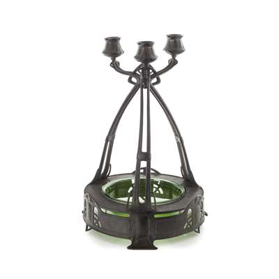 PEWTER AND GLASS CENTREPIECE, CIRCA 1900
