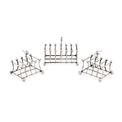 GROUP OF THREE ELECTROPLATED TOAST RACKS, LATE 19TH CENTURY