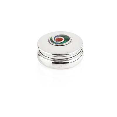 'CYMRIC' SILVER AND ENAMEL PILL BOX, DATED 1905