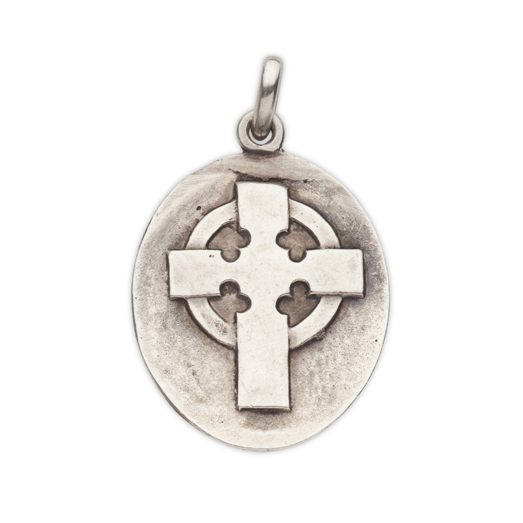 cast with a Celtic cross to one side and a Gaelic inscription to the other, marked IONA/ A.R.
