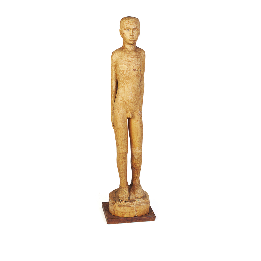 carved elm figure, signed with initials R.R.R.